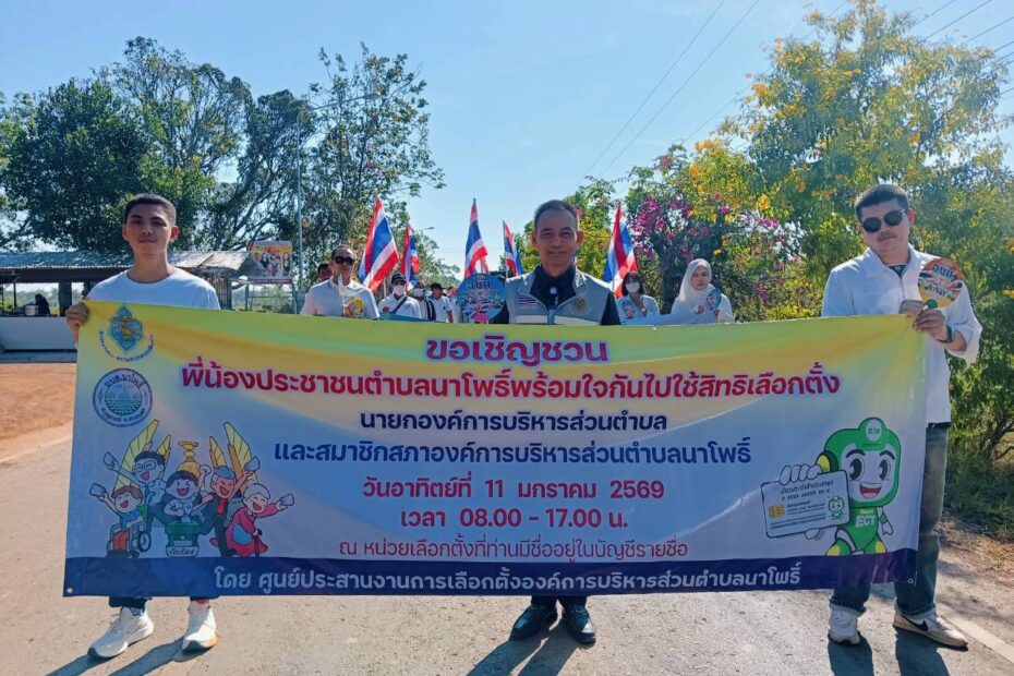 วันที่ 7 พ.ย. 2569 เวลา 09.30 น.องค์การบริหารส่วนตำบลนาโพธิ์ นำโดยนายยุทธศักดิ์ บุษนาม ปลัดองค์การบริหารส่วนตำบลนาโพธิ์ ปฏิบัติหน้าที่นายกองค์การบริหารส่วนตำบลนาโพธิ์ ร่วมกับ เจ้าหน้าที่ พนักงาน อบต. ได้จัดกิจกรรมเดินรณรงค์เชิญชวนประชาชนให้ไปใช้สิทธิเลือกตั้งสมาชิกสภาองค์การบริหารส่วนตำบล และนายกองค์การบริหารส่วนตำบล มีการถือป้ายรณรงค์ และมอบคู่มือประชาชนเลือกตั้ง อบต. และคู่มือแนะนำผู้สมัคร สมาชิกสภาองค์การบริหารส่วนตำบลนาโพธิ์ และนายก ให้ความรู้ให้กับประชาชน 12 หมู่บ้าน ในพื้นที่เขตตำบลนาโพธิ์ เพื่อเชิญชวนประชาชนออกมาใช้สิทธิ์เลือกตั้งให้ได้มากที่สุด โดยมีวัตถุประสงค์ เพื่อสร้างความรู้ความเข้าใจ และเผยแพร่ข้อมูลเกี่ยวกับการเลือกตั้ง เป็นการกระตุ้นเตือน และ สร้างความเข้าใจในสิทธิและหน้าที่ของตนในระบอบประชาธิปไตย