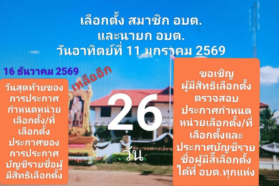 เหลือเวลาอีก 26 วัน เลือกตั้งสมาชิกสภาองค์การบริหารส่วนตำบลและนายกองค์การบริหารส่วนตำบล กรณีครบวาระข่าวประชาสัมพันธ์, ประกาศ/หนังสือราชการ/ดาวน์โหลด, ไฮไลท์ Pimraput.ta