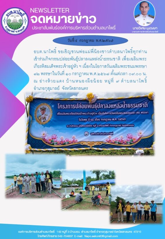 โครงการปล่อยพันธุ์ปลาลงแหล่งน้ำธรรมชาติ ๒๕๖๗ข่าวประชาสัมพันธ์, ประกาศ/หนังสือราชการ/ดาวน์โหลด, ไฮไลท์ Pimraput.ta จำนวนผู้เข้าชม : 168 FacebookFacebookXXLINELinepreviousประกาศผู้ชนะการเสนอราคา ประจำเดือน มิถุนายน ๒๕๖๗nextโครงการปล่อยพันธ์ปลาลงแหล่งนน้ำธรรมชาติ เพื่อเฉลิมพระเกียรติสมเด็จพระเจ้าอยู่หัว ฯ เนื่อในโอกาสวันเฉลิมพระชนมพรรษา ในวันที่ ๑๐ กรกฎาคม พ.ศ.๒๕๖๗ ณ อ่างห้วยแดง บ้านหนองผือน้อย หมู่ที่ ๙ ตำบลนาโพธิ์ อำเภอกุสุมาลย์ จังหวัดสกลนคร