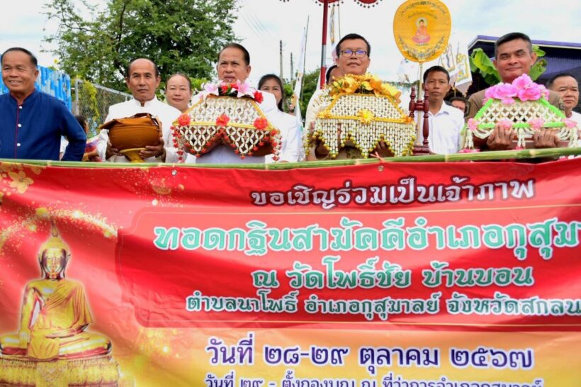 นายอำเภอกุสุมาลย์ นายปรีชา มณีสร้อย นายวิเศษ มุงวงษา นายกองค์การบริหารส่วนตำบลนาโพธิ์ เป็นประธานถวายผ้าพระกฐิน พร้อมคณะผู้บริหาร หัวหน้าส่วน พนักงานส่วนตำบลฯ กำนัน ผู้ใหญ่บ้าน และประชาชนชาวตำบลนาโพธิ์ เข้าร่วมพิธีถวายผ้าพระกฐิน พร้อมเครื่องบริวารเพื่อถวายแด่พระสงฆ์ ณ วัดโพธิ์ชัย บ้านบอน ตำบลนาโพธิ์ อำเภอกุสุมาลย์ จังหวัดสกลนคร ซึ่งเป็นการบำเพ็ญพระราชกุศลอันสูงยิ่งตามประเพณีที่สืบทอดมาและเพื่อทำนุบำรุงพระพุทธศาสนาให้มีึความเจริญรุ่งเรืองสืบไปข่าวประชาสัมพันธ์, ภาพกิจกรรม, ไฮไลท์ Pimraput.ta จำนวนผู้เข้าชม : 68 FacebookFacebookXXLINELinepreviousประกาศองค์การบริหารส่วนตำบลนาโพธิ์ ประจำเดือน สิงหาคม พ.ศ.๒๕๖๗- เดือน ตุลาคม พ.ศ.๒๕๖๗nextประกาศผู้ชนะการเสนอรา ประจำเดือน 28 สิงหาคม 2567 – 10 ตุลาคม 2567