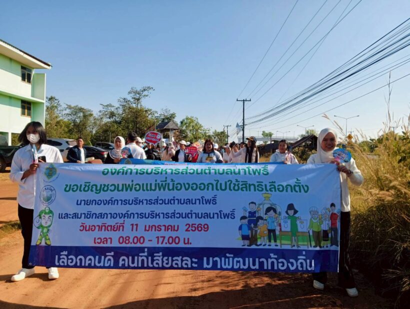 วันที่ 7 พ.ย. 2569 เวลา 09.30 น.องค์การบริหารส่วนตำบลนาโพธิ์ นำโดยนายยุทธศักดิ์ บุษนาม ปลัดองค์การบริหารส่วนตำบลนาโพธิ์ ปฏิบัติหน้าที่นายกองค์การบริหารส่วนตำบลนาโพธิ์ ร่วมกับ เจ้าหน้าที่ พนักงาน อบต. ได้จัดกิจกรรมเดินรณรงค์เชิญชวนประชาชนให้ไปใช้สิทธิเลือกตั้งสมาชิกสภาองค์การบริหารส่วนตำบล และนายกองค์การบริหารส่วนตำบล มีการถือป้ายรณรงค์ และมอบคู่มือประชาชนเลือกตั้ง อบต. และคู่มือแนะนำผู้สมัคร สมาชิกสภาองค์การบริหารส่วนตำบลนาโพธิ์ และนายก ให้ความรู้ให้กับประชาชน 12 หมู่บ้าน ในพื้นที่เขตตำบลนาโพธิ์ เพื่อเชิญชวนประชาชนออกมาใช้สิทธิ์เลือกตั้งให้ได้มากที่สุด โดยมีวัตถุประสงค์ เพื่อสร้างความรู้ความเข้าใจ และเผยแพร่ข้อมูลเกี่ยวกับการเลือกตั้ง เป็นการกระตุ้นเตือน และ สร้างความเข้าใจในสิทธิและหน้าที่ของตนในระบอบประชาธิปไตยข่าวประชาสัมพันธ์, ประกาศ/หนังสือราชการ/ดาวน์โหลด, ภาพกิจกรรม, ไฮไลท์ Pimraput.ta จำนวนผู้เข้าชม : 54 FacebookFacebookXXLINELinepreviousวันที่ 30 ธันวาคม 2568 องค์การบริหารส่วนตำบลนาโพธิ์ นำโดย จ่าเอก ยุทธศักดิ์ บุษนาม มอบหมาย จ่าสิบตรี อดิศร ชินวงศ์ นักป้องกันและบรรเทาสาธารณภัย ฯหน่วยป้องกันและบรรเทาสาธารณภัยเปิดศูนย์ปฏิบัติการป้องกันและลดอุบัติเหตุทางถนนช่วงเทศกาลปีใหม่ 2569nextวันที่ 9 มกราคมคม 2569 เวลา 09.30 น. จ่าเอกยุทธศักดิ์ บุษนาม ปลัดองค์การบริหารส่วนตำบลนาโพธิ์ ปฏิบัติหน้า ที่นายกองค์การบริหารส่วนตำบลนาโพธิ์ เป็นประธานเปิดงานวันเด็กแห่งชาติ พร้อมเจ้าหน้าที่ พนักงาน อบต. ได้จัดกิจกรรมร่วมกับโรงเรีบนบ้านม่วงวิทยา ณ หอประชุมโรงเรียนบ้านม่วงวิทยา