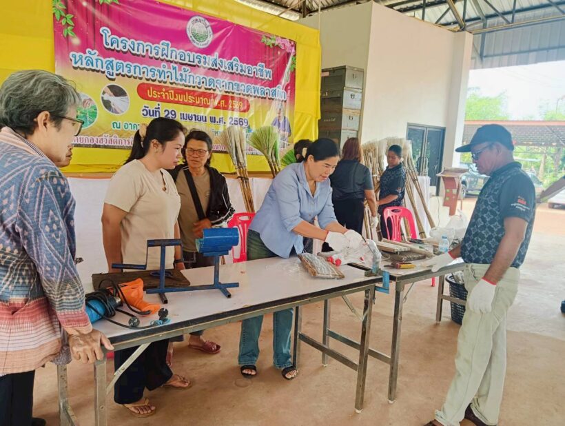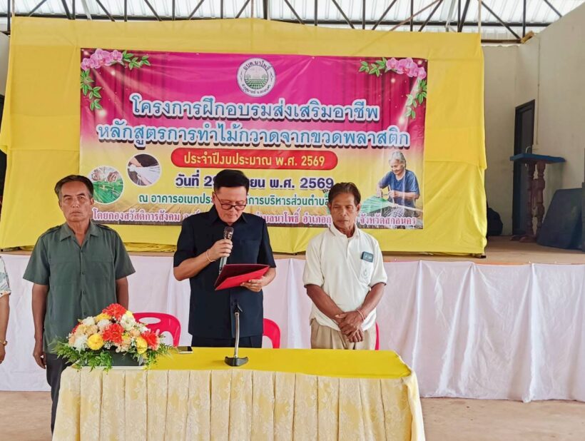 วันพุธที่ 29 เมษายน 2569 เวลา 09.30 น. นายชาติชาย ยศทอง นายกองค์การบริหารส่วนตำบลนาโพธิ์ เป็นประธาน ในพิธีเปิดโครงการฝึกอบรมส่งเสริมอาชีพหลักสูตรการทำไม้กวาดจากขวดพลาสติก จ่าเอกยุทธศักดิ์ บุษนาม ปลัดองค์การบริหารส่วนตำบลนาโพธิ์ กล่าวรายงาน พร้อมด้วยคณะผู้บริหาร สมาชิกสภาบริหารส่วนตำบลฯ หัวหน้าหน้าฝ่ายบริหารงานทั่วไป กองสวัสดิการสังคม และพนักงานส่วนตำบลฯ องค์การบริหารส่วนตำบลนาโพธิ์ได้เล็งเห็นคุณประโยนชน์ในการที่จะเสริมสร้างศักยภาพในการเรียนรู้และพัฒนาตนเอง เพื่อส่งเสริมกิจกรรมการรวมกลุ่มอาสาสมัคร ผู้สูงอายุผู้พิการ และประชาชนทั่วไป เพื่อเพิ่มศักยภาพและเกิดประโยชน์ในการส่งเสริมอาชีพสามารถต่อยอดเป็นอาชีพเสริมตามหลักเศรษฐกิจพอเพียง เพื่อลดรายจ่ายและเพิ่มรายได้ ส่งเสริมการเพิ่มมูลค่าจากขยะ เพื่อสร้างงาน สร้างรายได้ให้กับครอบครัวและชุมชน และเพื่อนำความรู้จากกิจกรรมการฝึกอบรม มาพัฒนาให้เกิดการเปลี่ยนแปลงทั้งด้านคุณภาพชีวิตประกอบอาชีพ เพื่อเสริมสร้างการรวมกลุ่มอาชีพเป็นรายได้เสริมของกลุ่มยามว่างจากอาชีพประจำและส่งเสริมการสร้างรายได้ให้กับครอบครัวและชุมชนต่อไปข่าวประชาสัมพันธ์, ประกาศ/หนังสือราชการ/ดาวน์โหลด, ภาพกิจกรรม, ไฮไลท์ Pimraput.ta จำนวนผู้เข้าชม : 1 FacebookFacebookXXLINELinepreviousเรื่อง เผยแพร่แผนการจัดซื้อจัดจ้าง ประจำปีงบประมาณ พ.ศ.2569