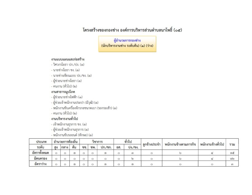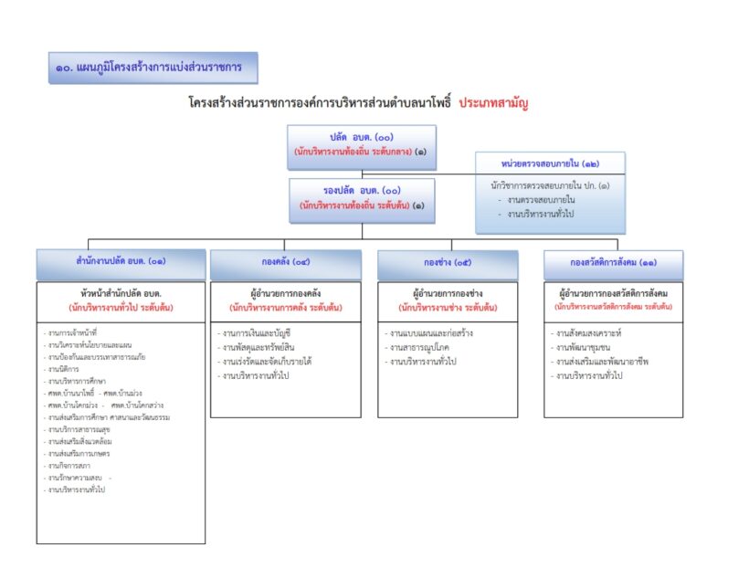 โครงสร้างการบริหารงานmenu Consult Adminโครงสร้างส่วนราชการองค์การบริหารส่วนตำบลนาโพธิ์ ประเภทสามัญ ดาวน์โหลดโครงสร้าง PDF โครงสร้างการบริหารงาน จำนวนผู้เข้าชม : 448 FacebookFacebookXXLINELinepreviousประวัติการจัดตั้งnextคณะผู้บริหาร